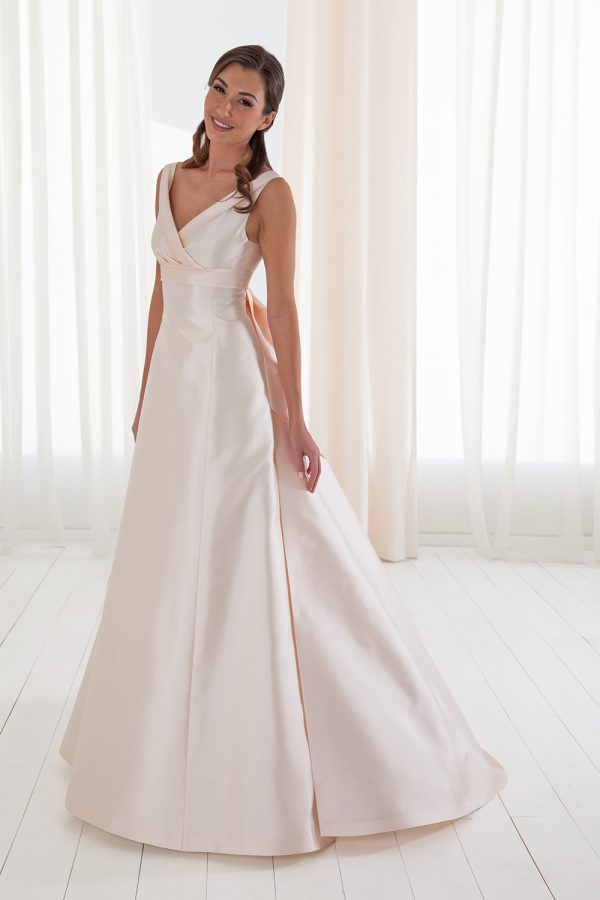 Abito Haute Couture in mikado di seta con profonda scollatura dietro.