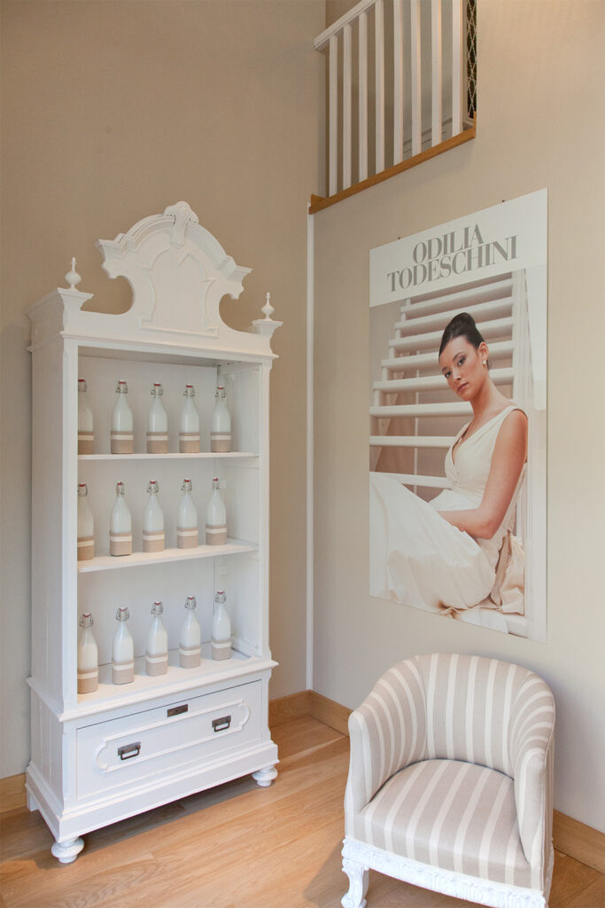 Nella progettazione della nuova sede Odilia ha voluto fortemente che l’immagine dello spazio corrispondesse allo stile di spontanea raffinatezza che contraddistingue le sue collezioni sposa.