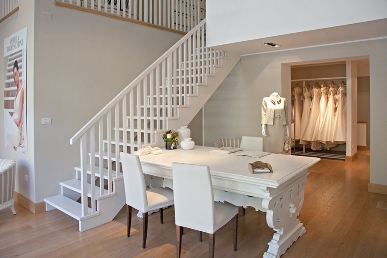 Già nel primo anno di attività avevo confezionato qualche abito da sposa per le mie clienti, poi nell’ottobre del 1993 mi sono sposata e in seguito ho esposto in vetrina il mio personale abito da sposa.